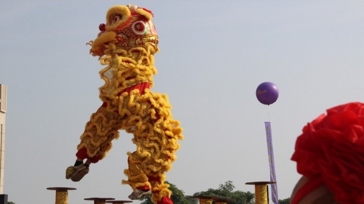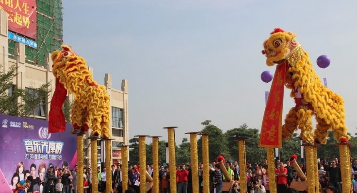 "梅花桩狮"号称中华武术武林绝技,是舞狮艺术的最高境界。其表演时突出醒狮喜、怒、哀、乐、疑、惊、睡、醒等感情变化。