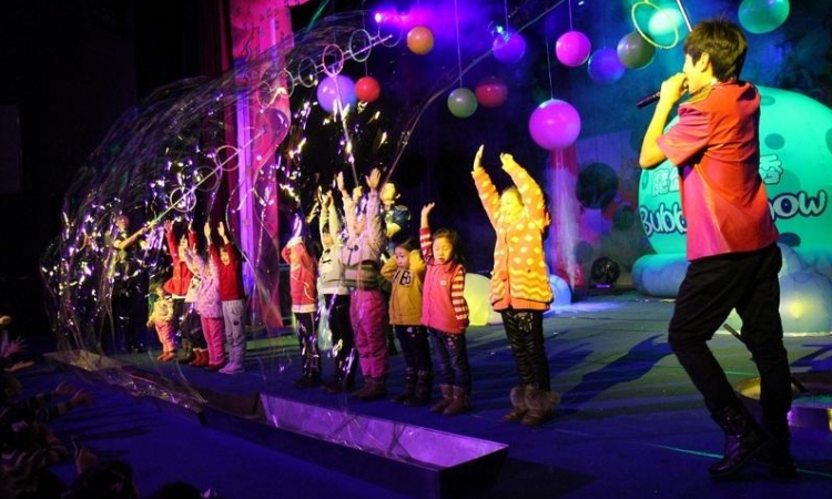 大能有多大?一个巨型泡泡包裹着你和你的朋友们… …小又有多小?五彩的泡泡好像漫天繁星 … …泡泡只能是圆的吗?那座彩虹桥是从哪里来的泡泡魔法王国,每一个人都将置身奇妙世界,这会是小朋友们童年最美好的回忆。可以看的、可以触摸的、大家一起蹦蹦跳跳的最棒的演出。非语言剧、注重体验的表现形式让每一位观众都能享受其中。