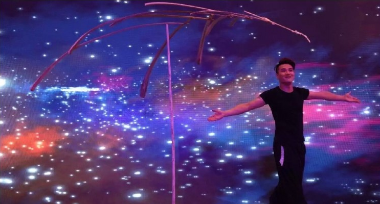 在西班牙一档节目视频中,表演者用一根羽毛搭配树枝,就这么一根接着一根地顶上来了,随着树枝越来越多,平衡系统越来越难控制,全场观众和评委也不由的屏住呼吸;所有树枝用完,表演者最后随着一根羽毛的抽走,整个平衡系统顿时崩塌,现场在鸦雀无声之后终于火热爆发,观众和评委无一不被征服。