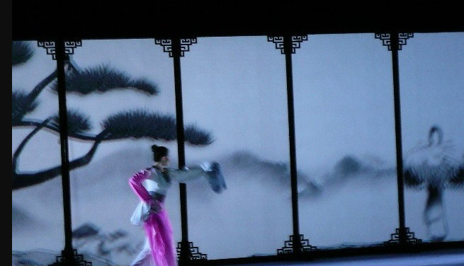 似飞腾狂草、和刚柔并进的太极描画丹青般的一招一式的精彩表演,在整个的舞台空间,塑造出一种古雅、端庄,充满中国传统舞蹈文化体态形象,在演员和视频互动情景交融、人与自然浑然一体中达到含蓄蕴藉、言有尽而意无穷的艺术境界,营造了一个恬静、雅致、高远的意境。