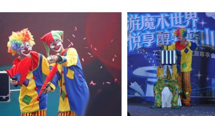 小丑分:气球小丑、魔术小丑、杂耍小丑、高跷小丑、独轮车小丑、滑稽小丑等