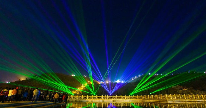 激光秀是在电脑控制下激光光束经过色彩合成调制器,激光扫描仪投射在空间或屏幕上各种炫目动、静、三维等特殊的空间光束效果的特点,来为企业或活动方制作灯光效果和宣传元素的一种光影特效。